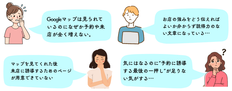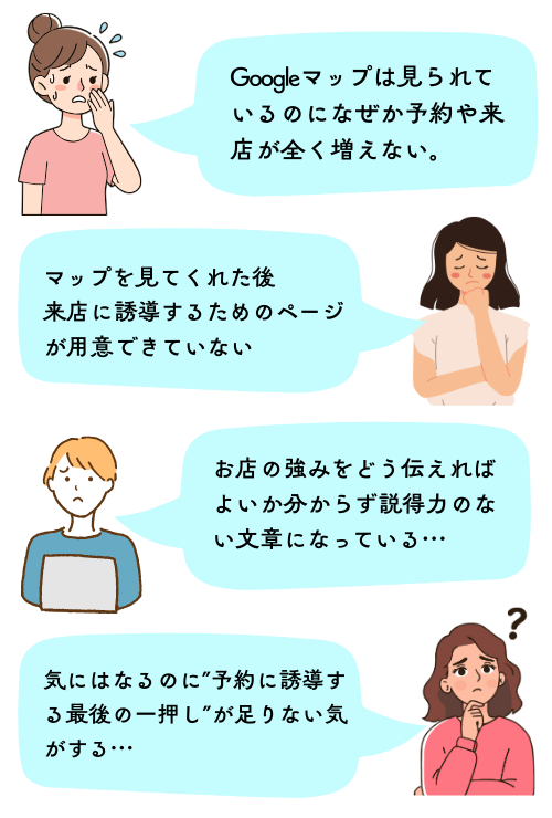 - Gogoleマップだけでは十分伝わらない部分をアピールページで案内することで新規獲得に繋がりやすい