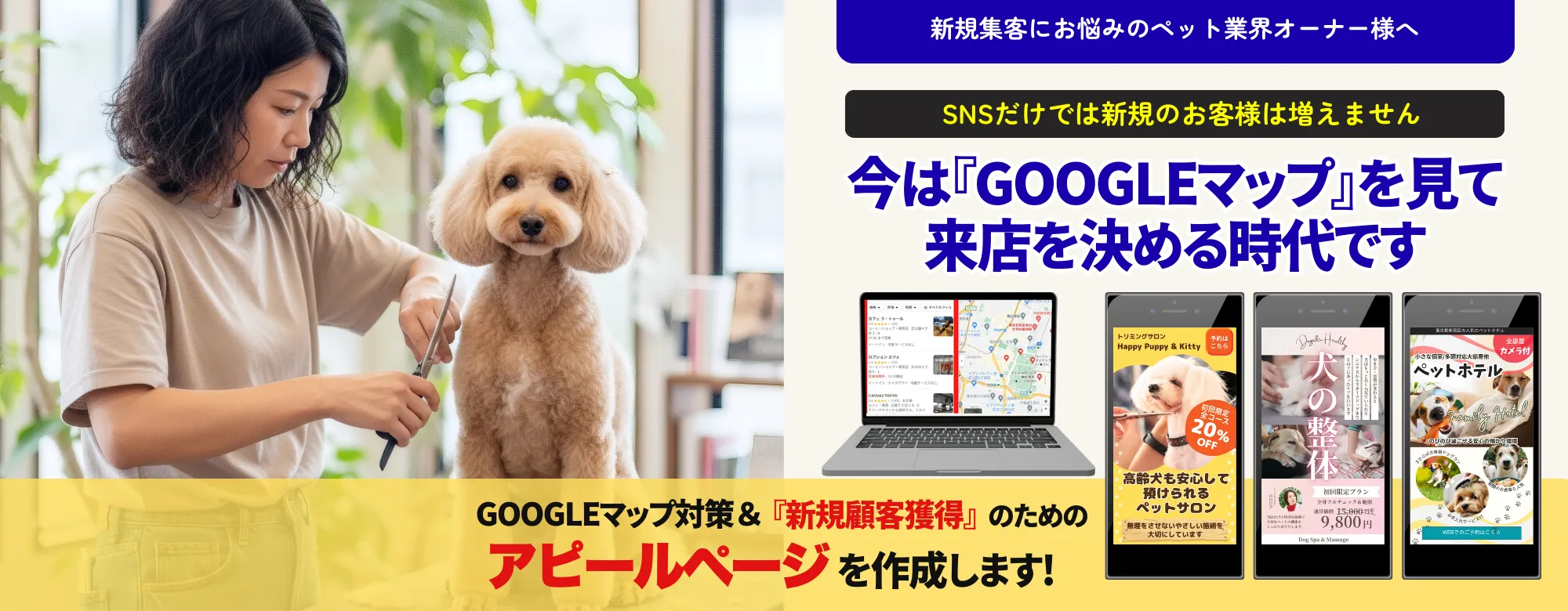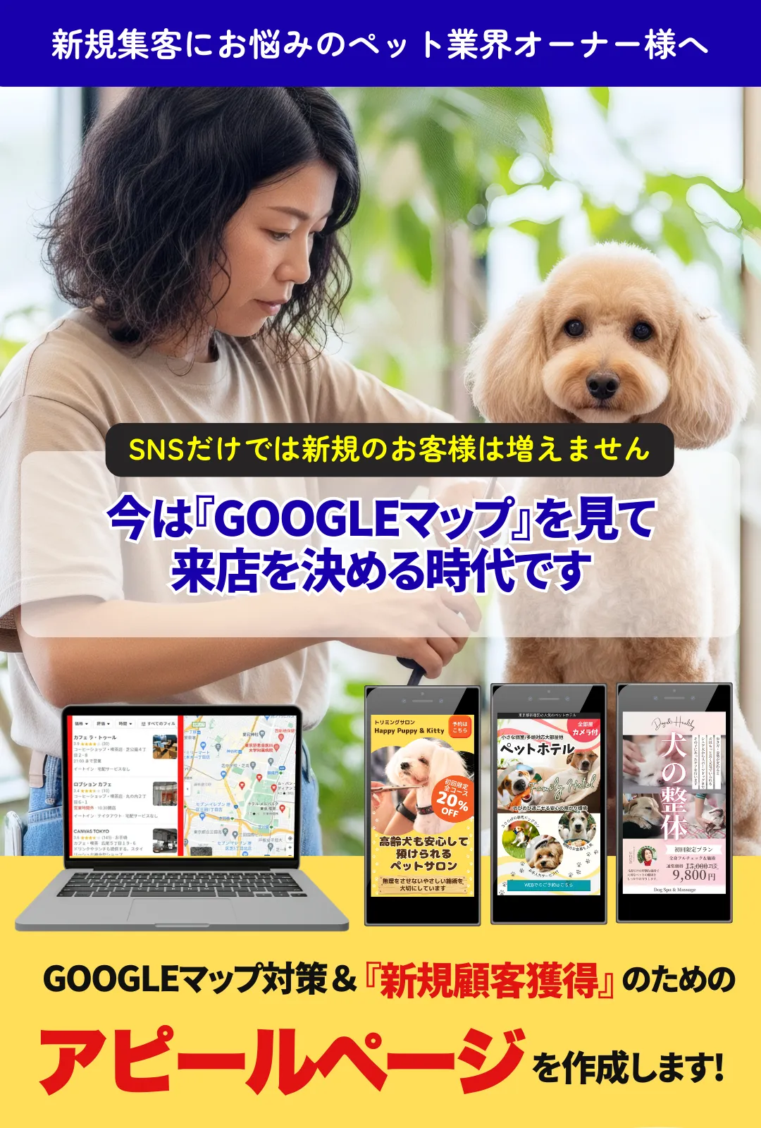 ペット業界ならではの事情や、飼い主の心理を理解したうえで無理な営業をせず、信頼されるページ作りをお手伝いします。