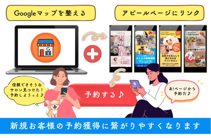- Gogoleマップだけでは十分伝わらない部分をアピールページで案内することで新規獲得に繋がりやすい