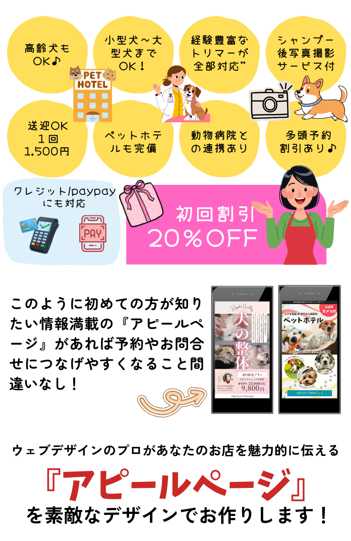 新規のお客様を獲得するための「アピールページ」をセットでご提供させていただくサービスです。